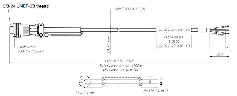 The EC318 922-318-000-002/5000 is an Cable Assembly with a 2-pin MIL-C/DTL-5015 type connector and RADOX® 125 2-wire cable with protection tube.
